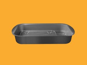 Uma assadeira com grelha com revestimento antiaderente é mais fácil de limpar e evita que os alimentos grudem na superfície.